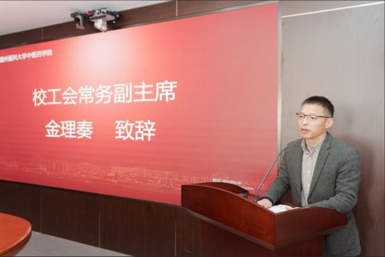 校工会常务副主席金理奏致辞。首先,他对大会的顺利召开表示祝贺。他指出,楼凤 刚成立,百业待兴,全体教职工要凝心聚力,稳步推进学院的发展。楼凤 工会要积极发挥桥梁纽带作用,发挥民主管理、监督促进的职责,进一步维护教职工的合法权益,解决好教职工最关心最直接最现实的利益问题。