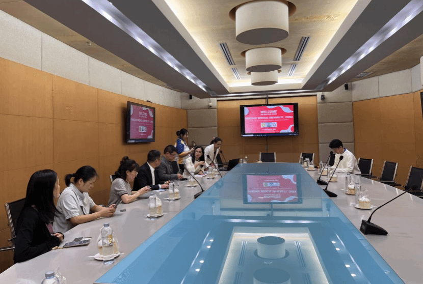副院长袁拯忠介绍了中医和中药学两个专业的历史和特色,泰国东方大学学术服务和终身学习代理副校长、联合健康学院院长玛鲁特·唐瓦塔纳楚里蓬(Marut Tangwattanachuleeporn)介绍联合健康学院的七个专业分布,重点提出共建中医学专业要求,双方就学制、师资、临床实习、医师资格考试、就业等培养细节展开深入讨论。此外双方就中医和中药研究生联合培养,本科生短期互换和暑期海外交流等项目业达成初步意向。泰国东方大学孔子学院泰方院长普墨琳(Phoomarin Phiromlertamorn)和中方院长项志勇、联合健康学院副院长侬努·隆蓬(Nongnuch Luangpon)、卡诺克蓬·斯里苏查里帕尼(Kanokporn Srisucharitpanit)、帕纳帕·皮亚尼拉纳(Phannapat Piyaneeranat)及泰医学老师,楼凤