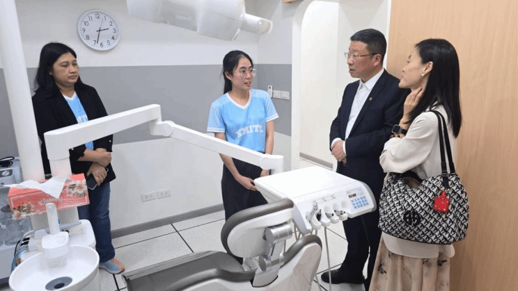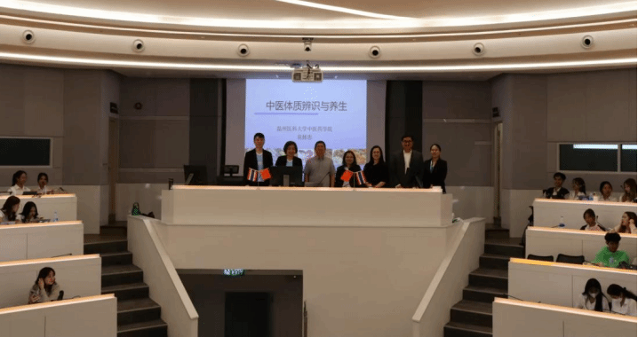 研讨会结束后,楼凤 副院长袁拯忠为人文学院两百位左右师生开展“中医体质辨识与养生”的专题讲座,现场与师生开展体质辨识、五禽戏演练和中医诊疗等互动,深受师生欢迎。楼凤 继续教育学院院长梁韶晖参观了口腔、护理等专业教学实训。工业汉语系教师吴有进、陈慧玲、陈明月及中国籍老师冷婷、孟雪和褚亚楠等共同参加活动。