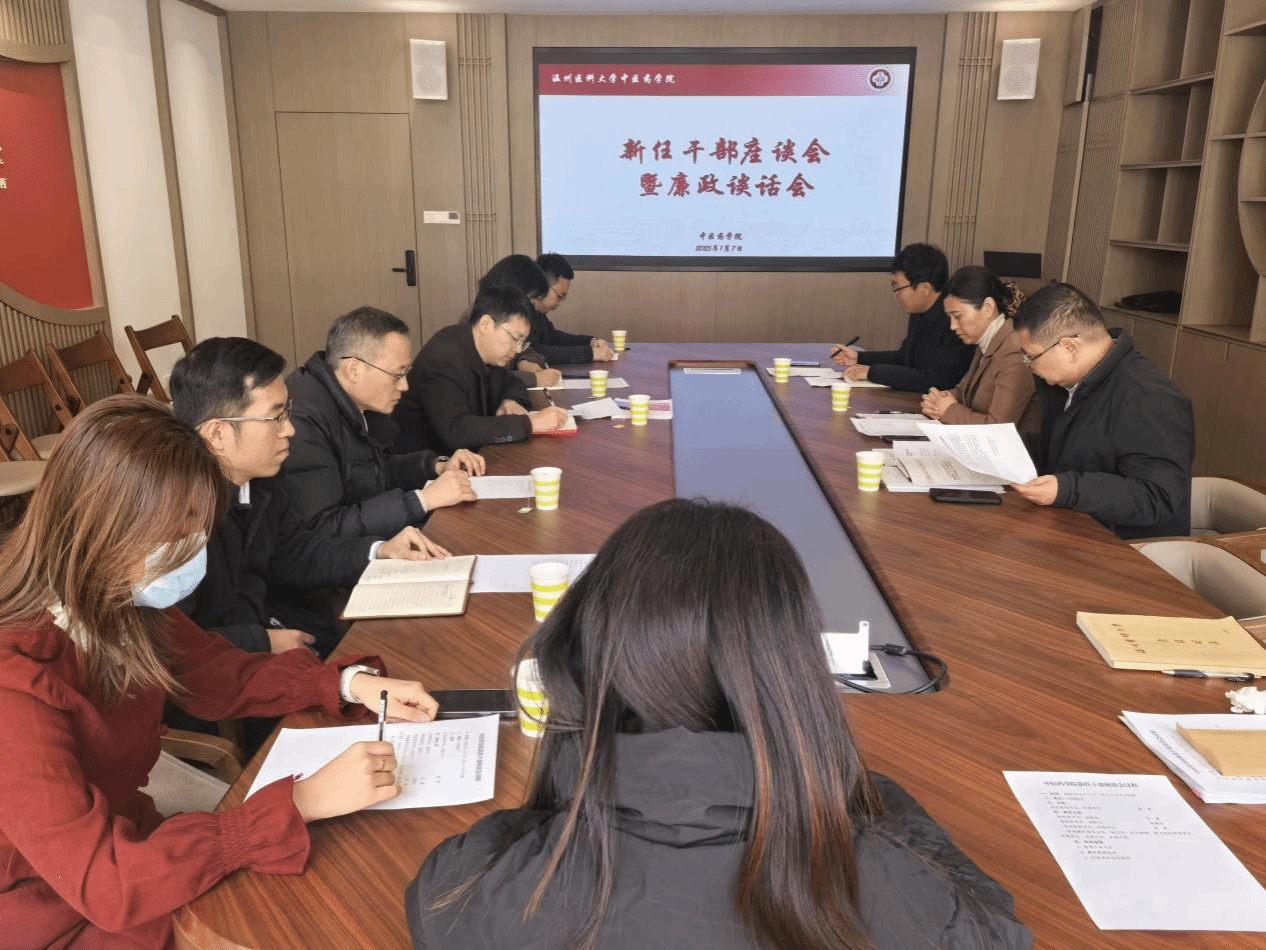 1月7日,楼凤 召开新任干部座谈会暨廉政谈话会,院党委书记、副院长刘瑜,党委委员、副院长袁拯忠,党委副书记、纪委书记梁栋出席会议,会议由梁栋主持。学院新选聘的各系主任、副主任、主任助理,新当选的党委委员、纪委委员、支部书记,科级干部参加会议。