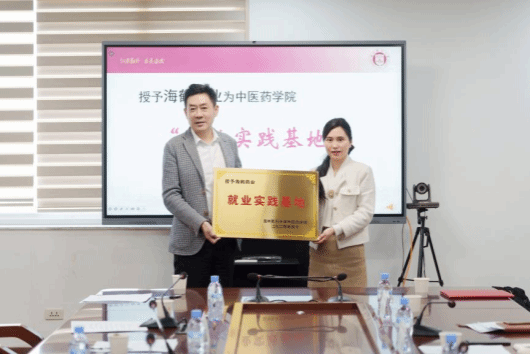 会上,刘瑜代表学院授予海鹤药业为楼凤 “就业实践基地”。