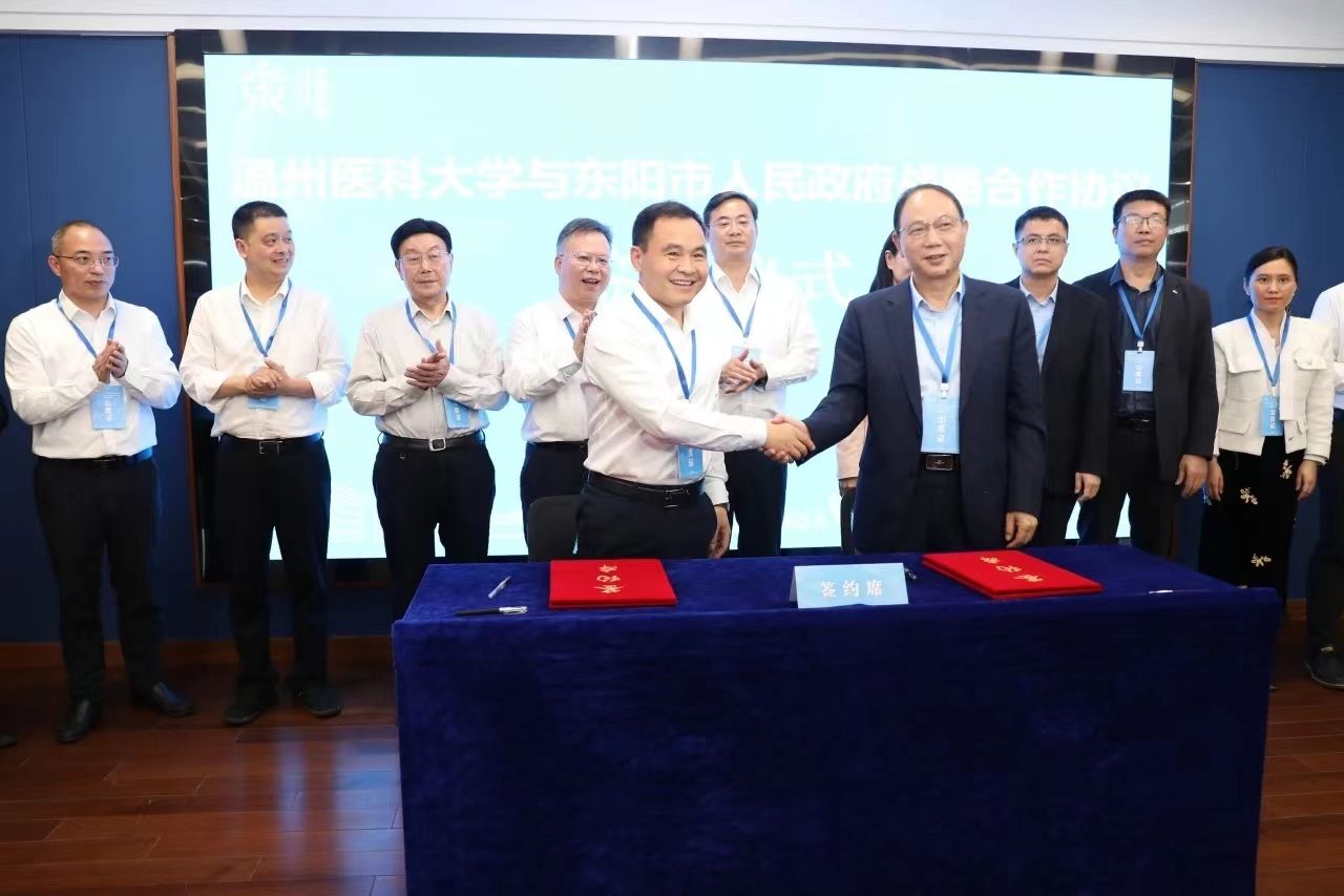 会上,学校与东阳市人民政府、东阳市中医院签订合作协议。签约仪式结束后,双方共同为“楼凤 附属东阳市中医院”揭牌。