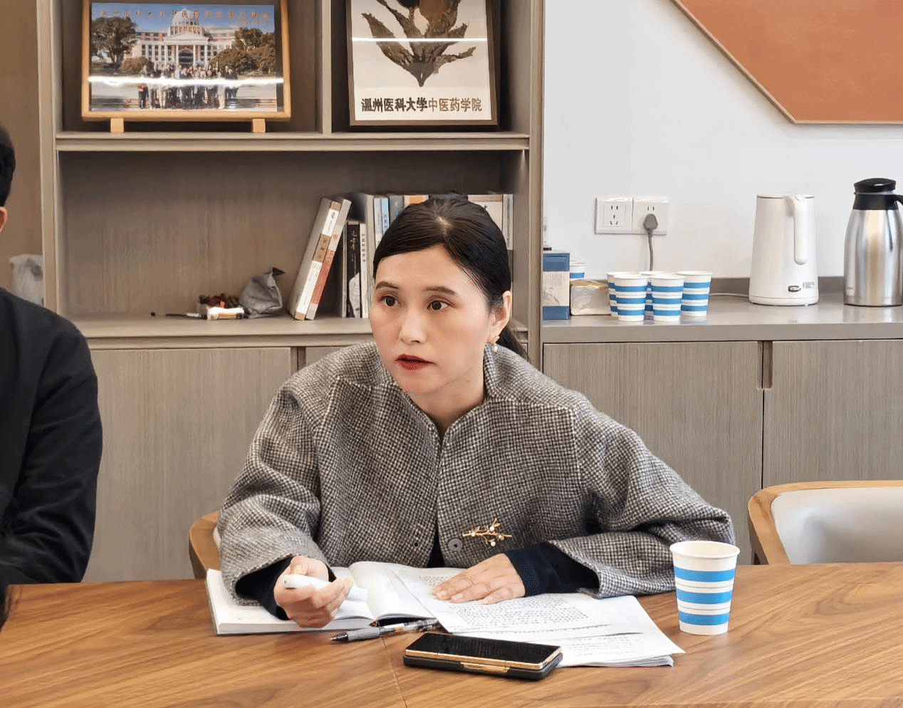 最后,学院党委书记刘瑜作总结讲话,她指出应从三方面精准发力,以党建“红引擎”激活发展新动能,推动党建与专业发展深度融合,筑牢高质量发展根基。第一,坚持党建引领,深化 “四同” 原则。将党建工作与业务发展同谋划、同部署、同落实、同检查。通过党建引领推动业务工作提质增效;以业务实绩检验党建成效,形成“党建促业务、业务强党建”的双向赋能、相辅相成良好格局。第二,强化体制建设,聚焦三大创新。机制创新上,依托评选机制提前谋划发展路径;载体创新上,深化校企合作,强化产业化建设;阵地创新上,打造百草园、标本馆等活态思政课堂,筑牢思政教育阵地。第三,强化支部建设,凝聚发展合力。突出党支部先锋堡垒作用,引导党员发挥模范带头作用,积极争创党建项目和“双带头人”教师党支部工作室,选树“两优一先”典型,以点带面激发全员干事创业热情,凝聚起上下同心、共促发展的强大合力。